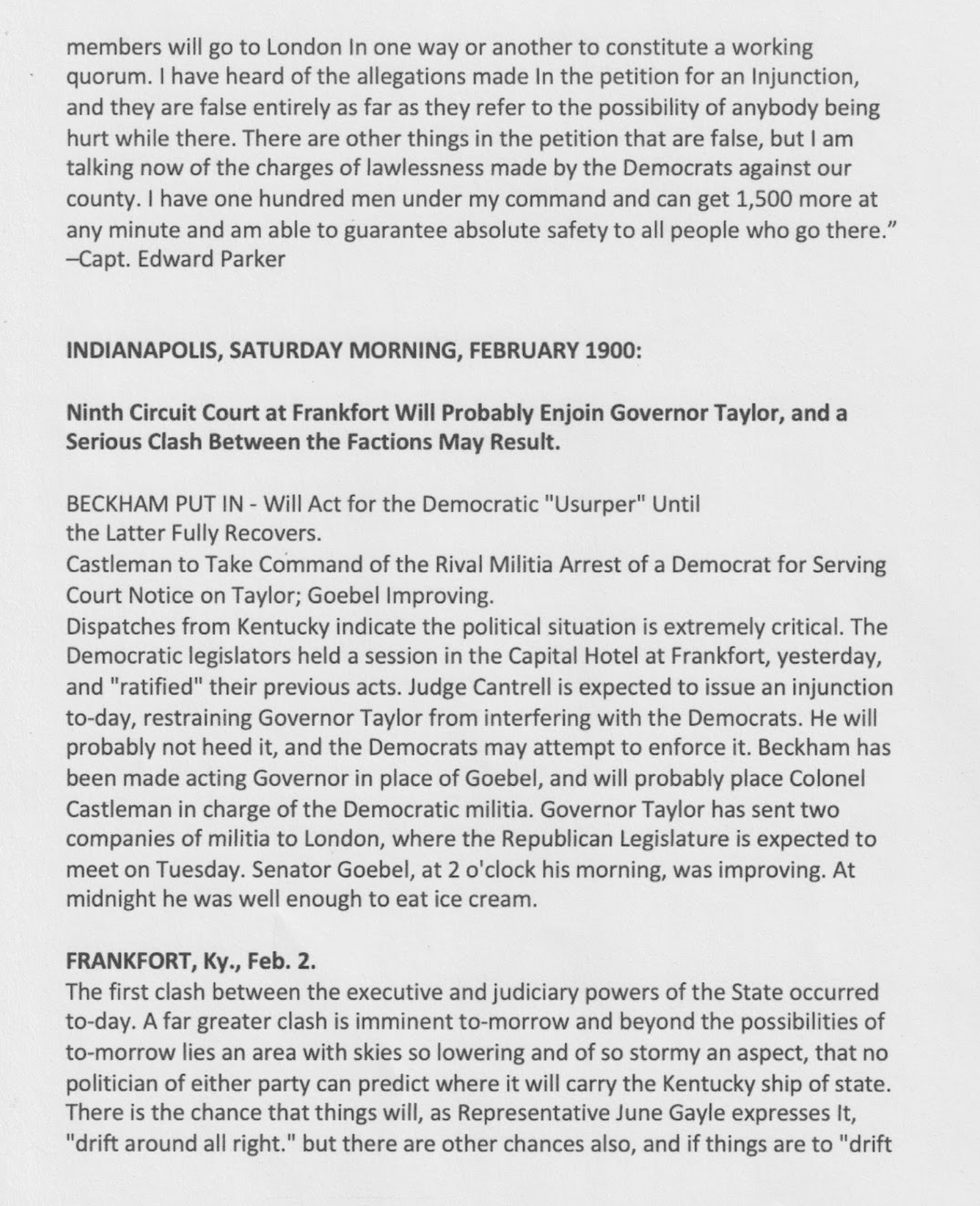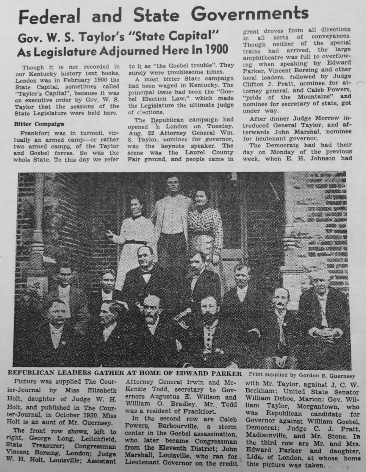 • William S. Taylor and Special Session of 1900 held in London, Ky., at the home of Edward Parker. (Session Article 1930) ( Print By: Gordon B. Guernsey).