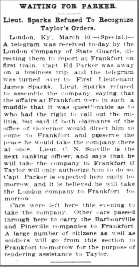 • The Honorable Edward Parker of Laurel County, Kentucky was my 2nd Great Grand Uncle. - Janet F. Auman.